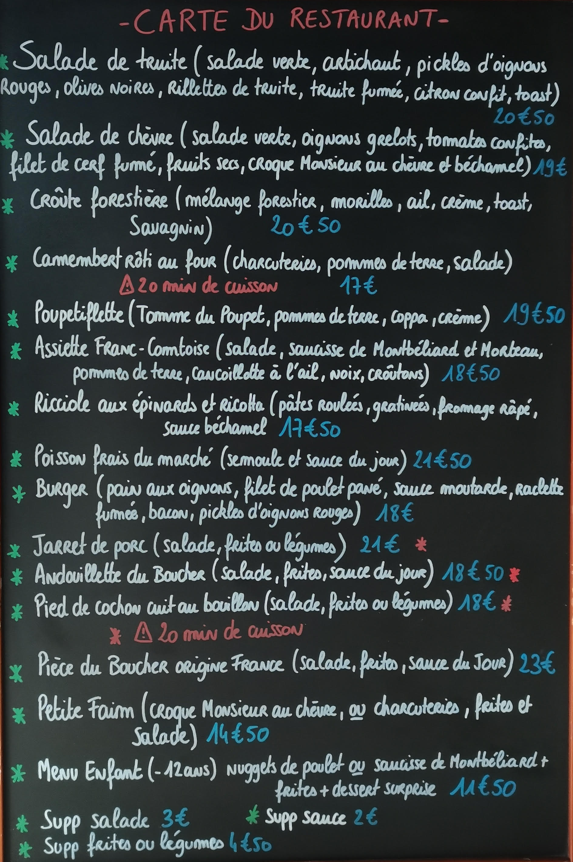 Renouvelée selon les saisons, la carte vous offre une cuisine faite maison avec beaucoup de produits locaux et régionaux.